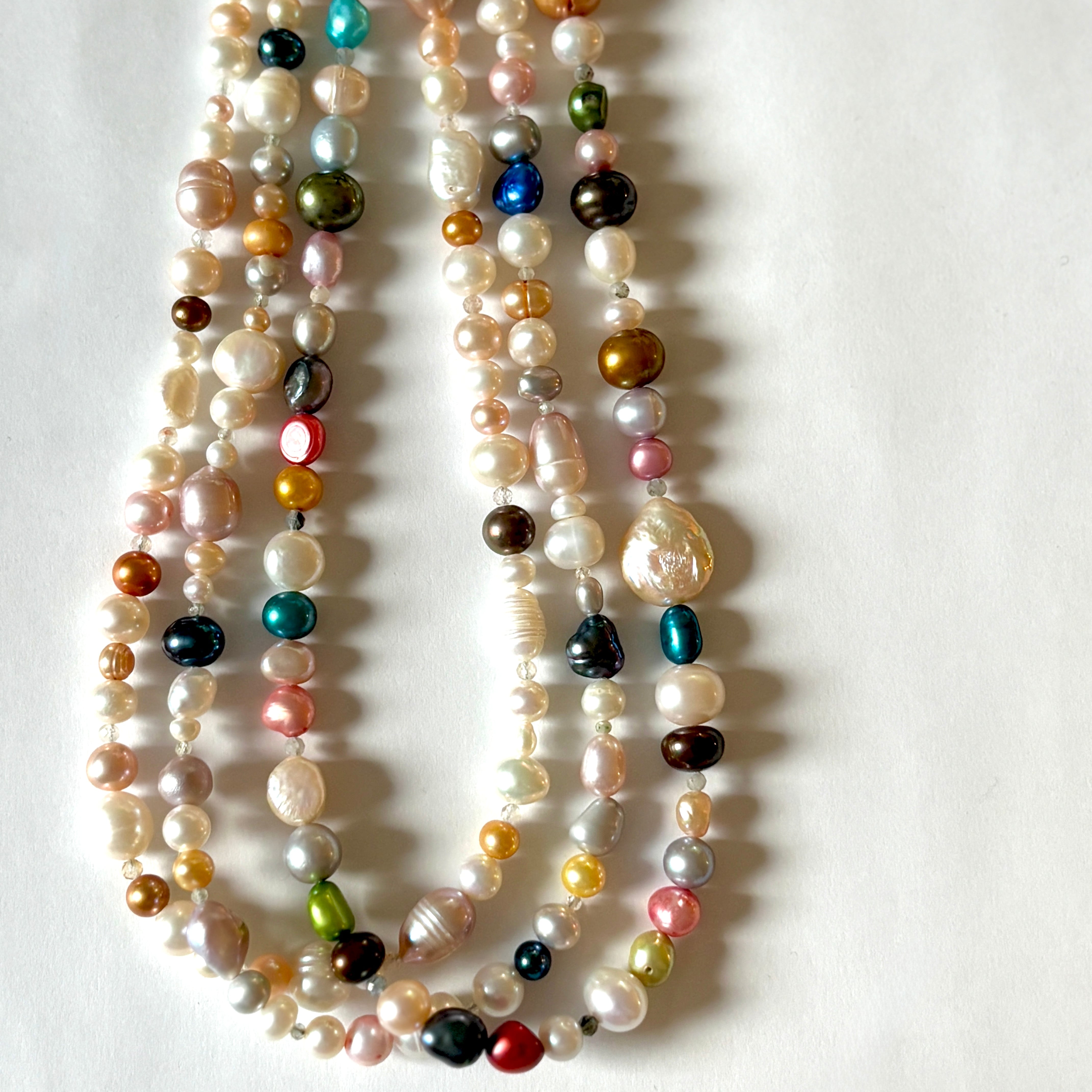 天然色や染めの淡水パールをいろいろmixしました。 夏に使いたい、カラフルでPOPなデザインと 淡水パールの大人っぽさが合わさったアイテムです。 長さ:約40cm アジャスター:約5cm 金具:サージカルステンレス