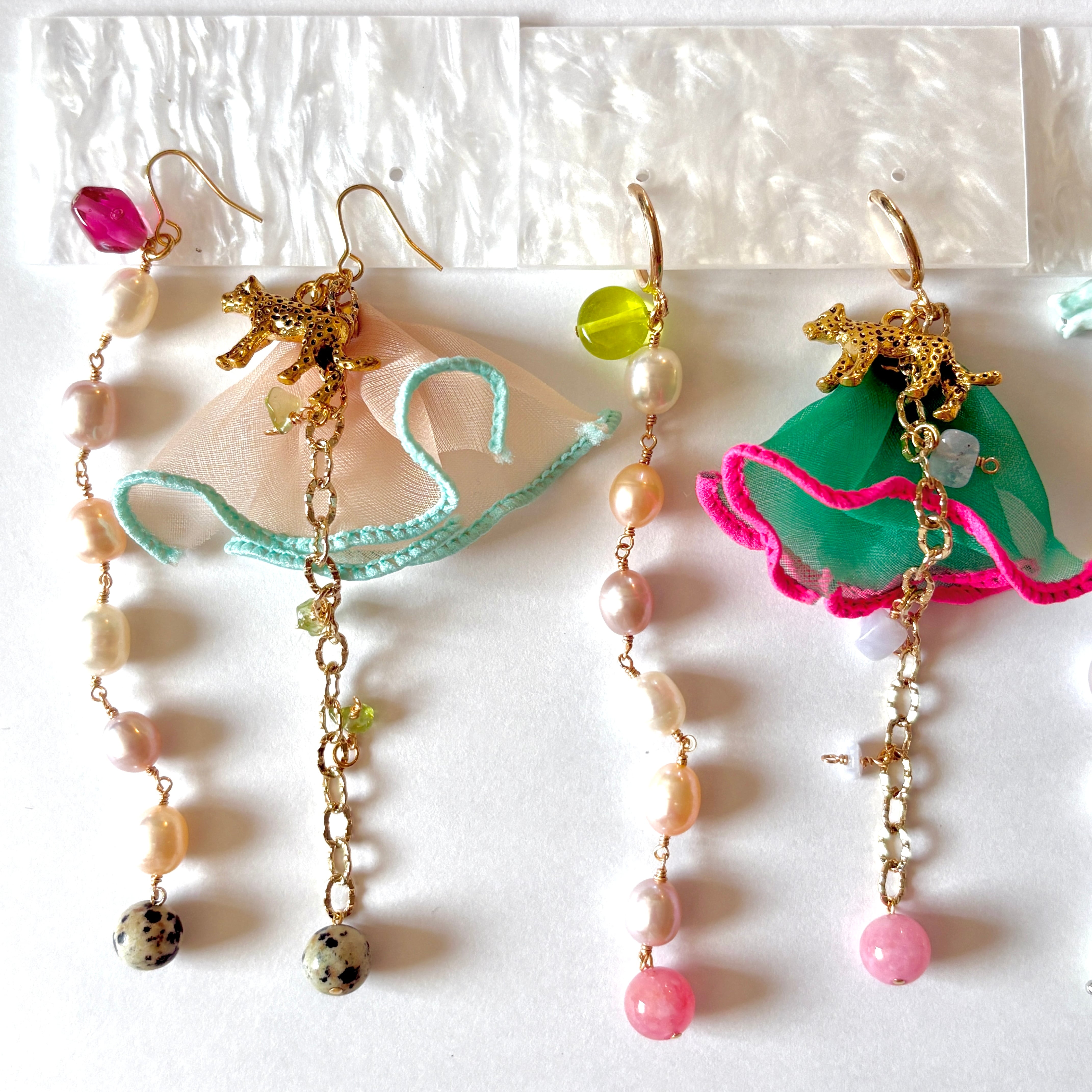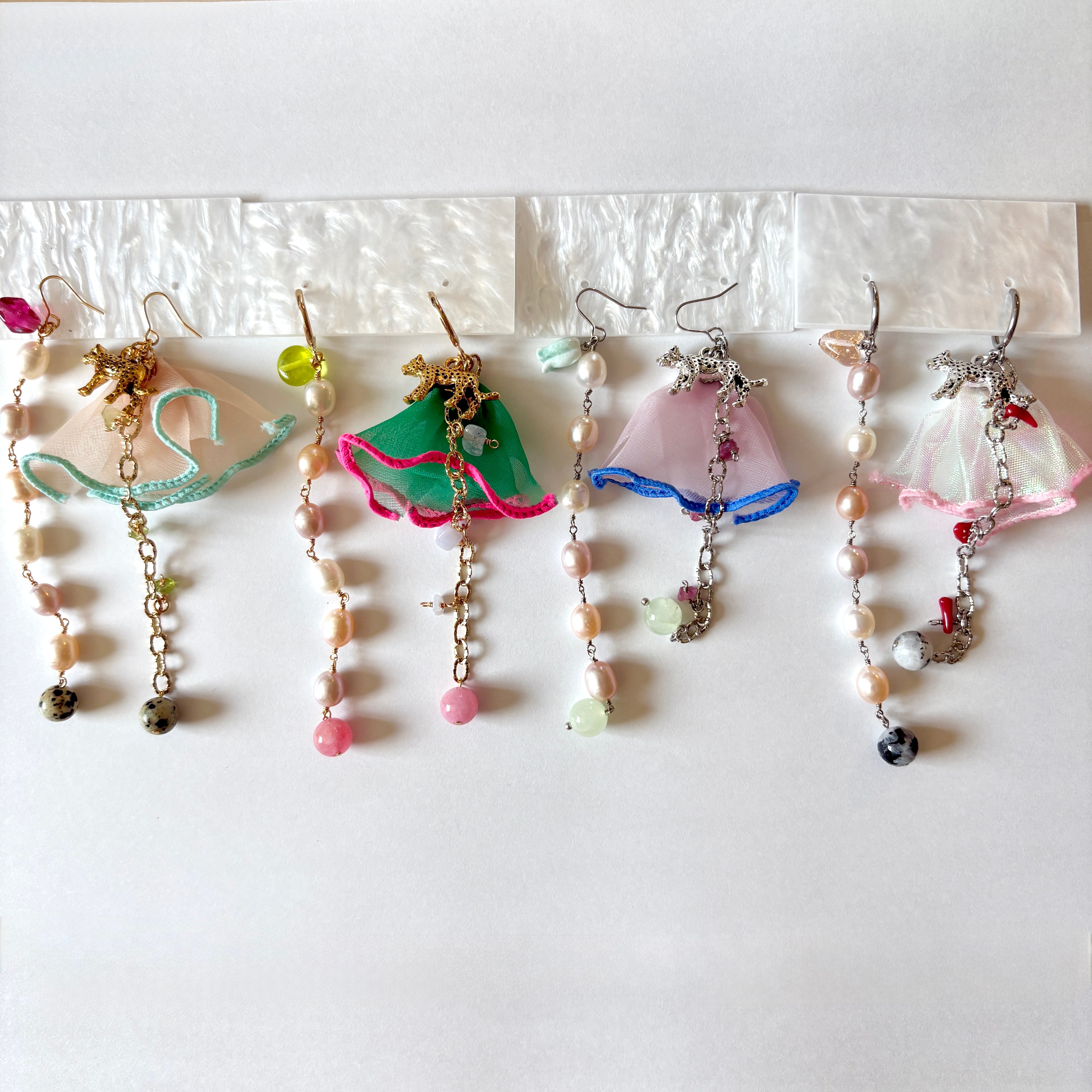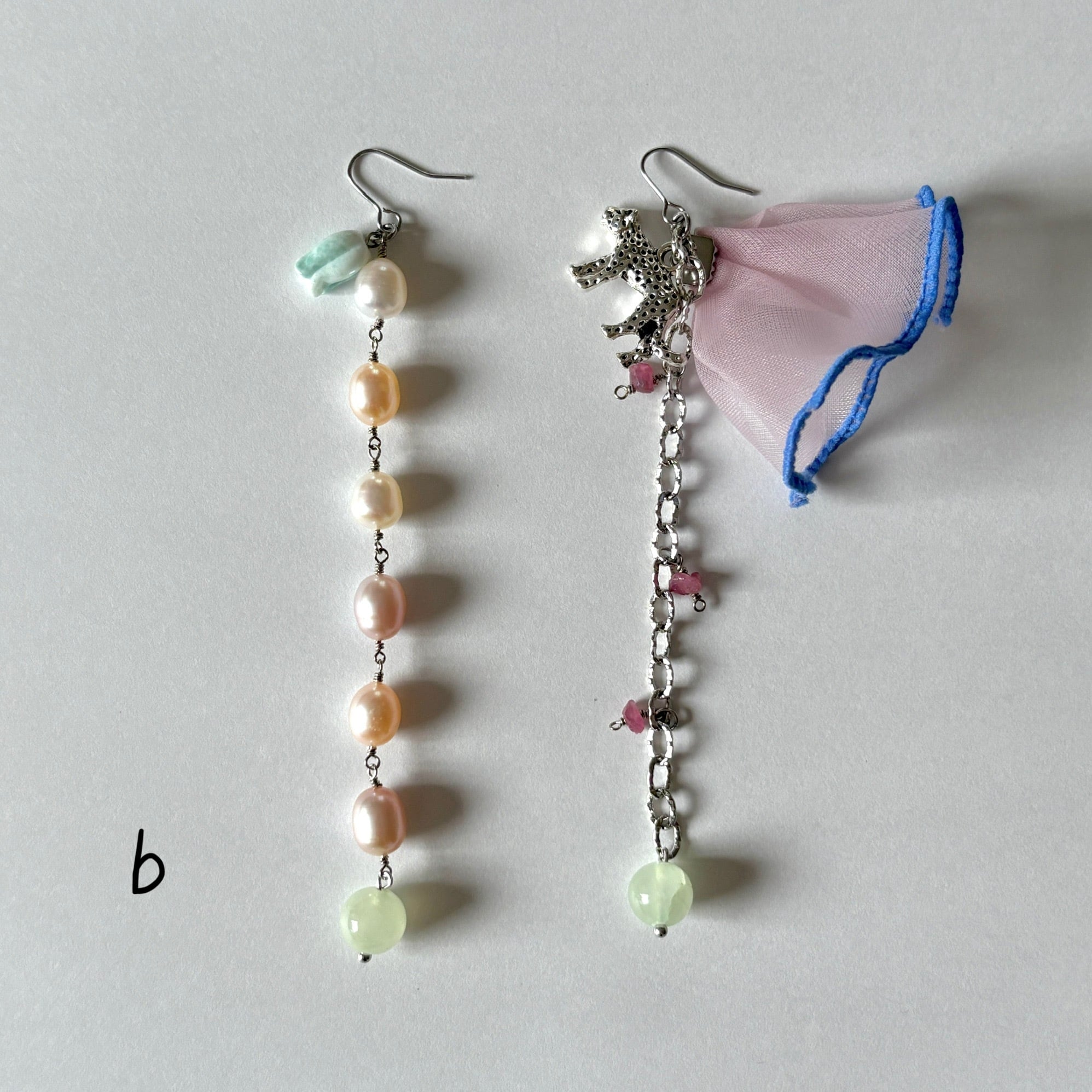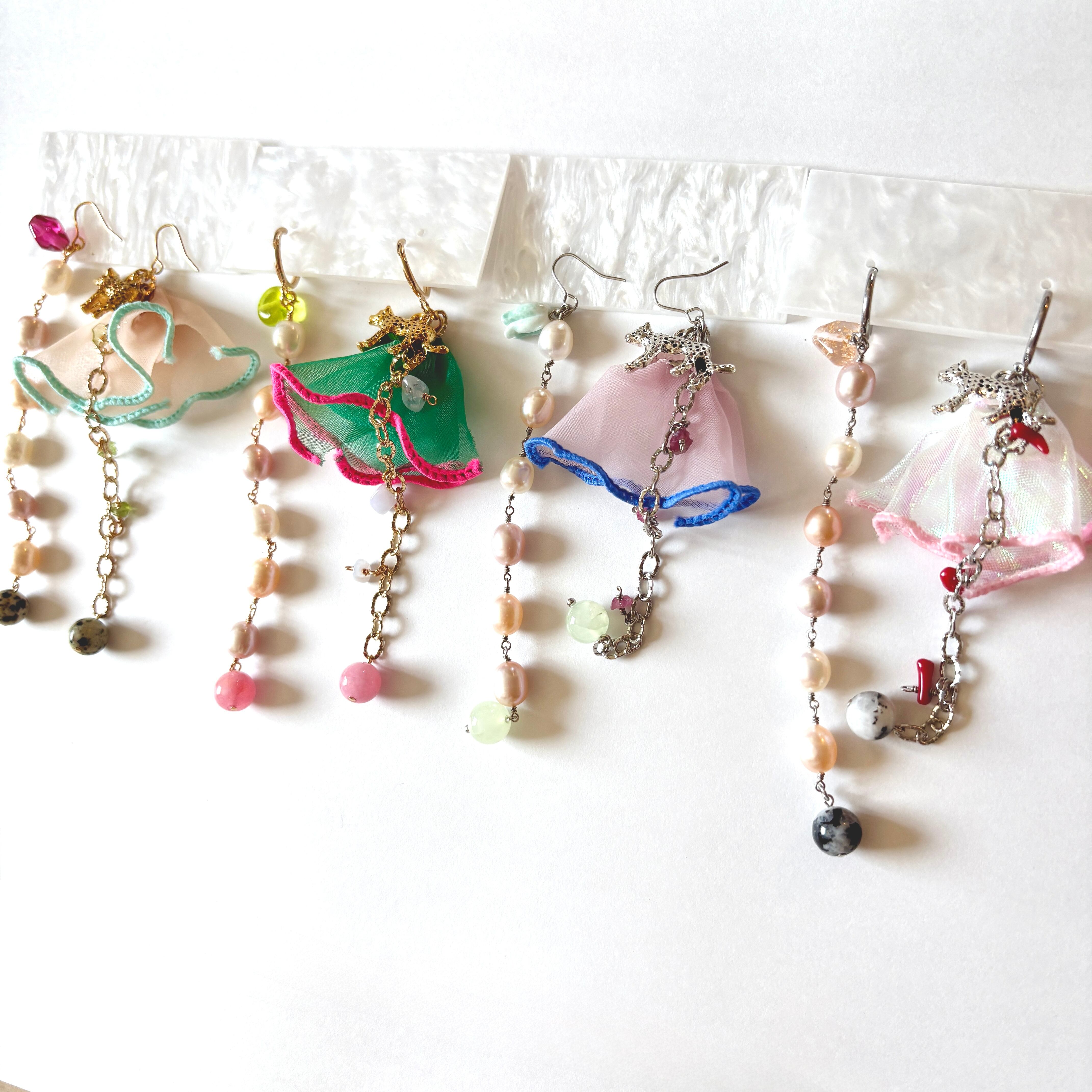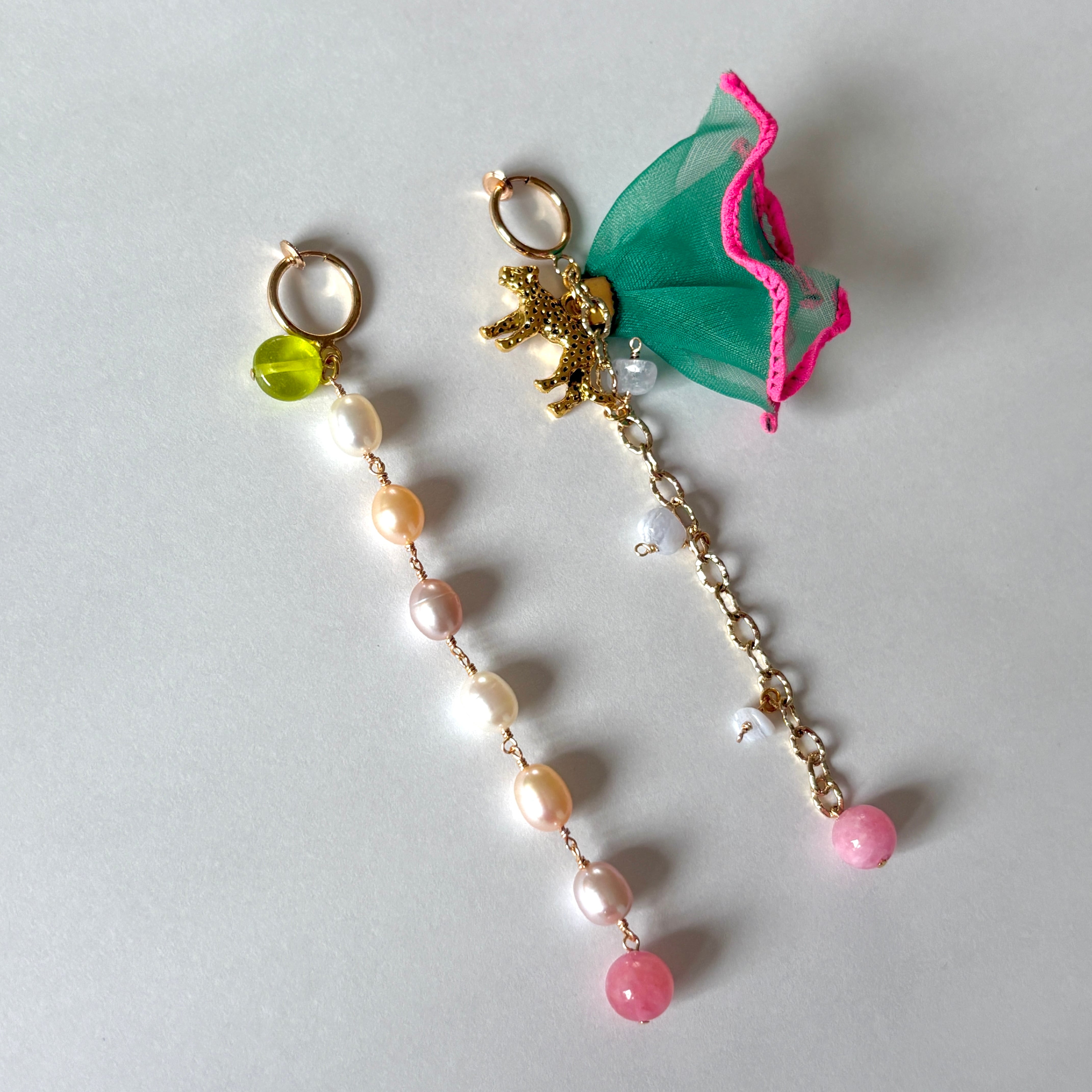 長さは揃っていますが、とことんアシンメトリーな耳飾りです。
