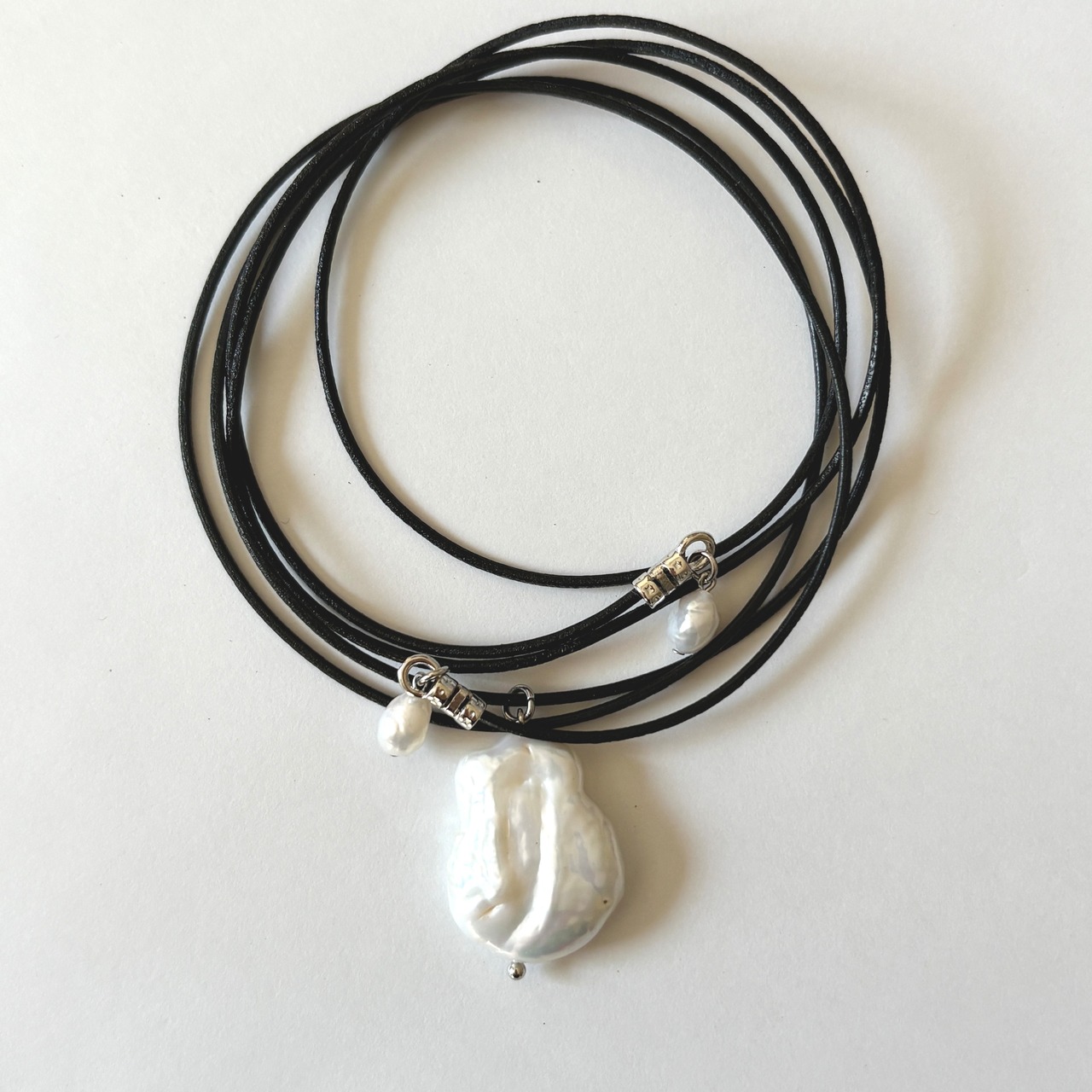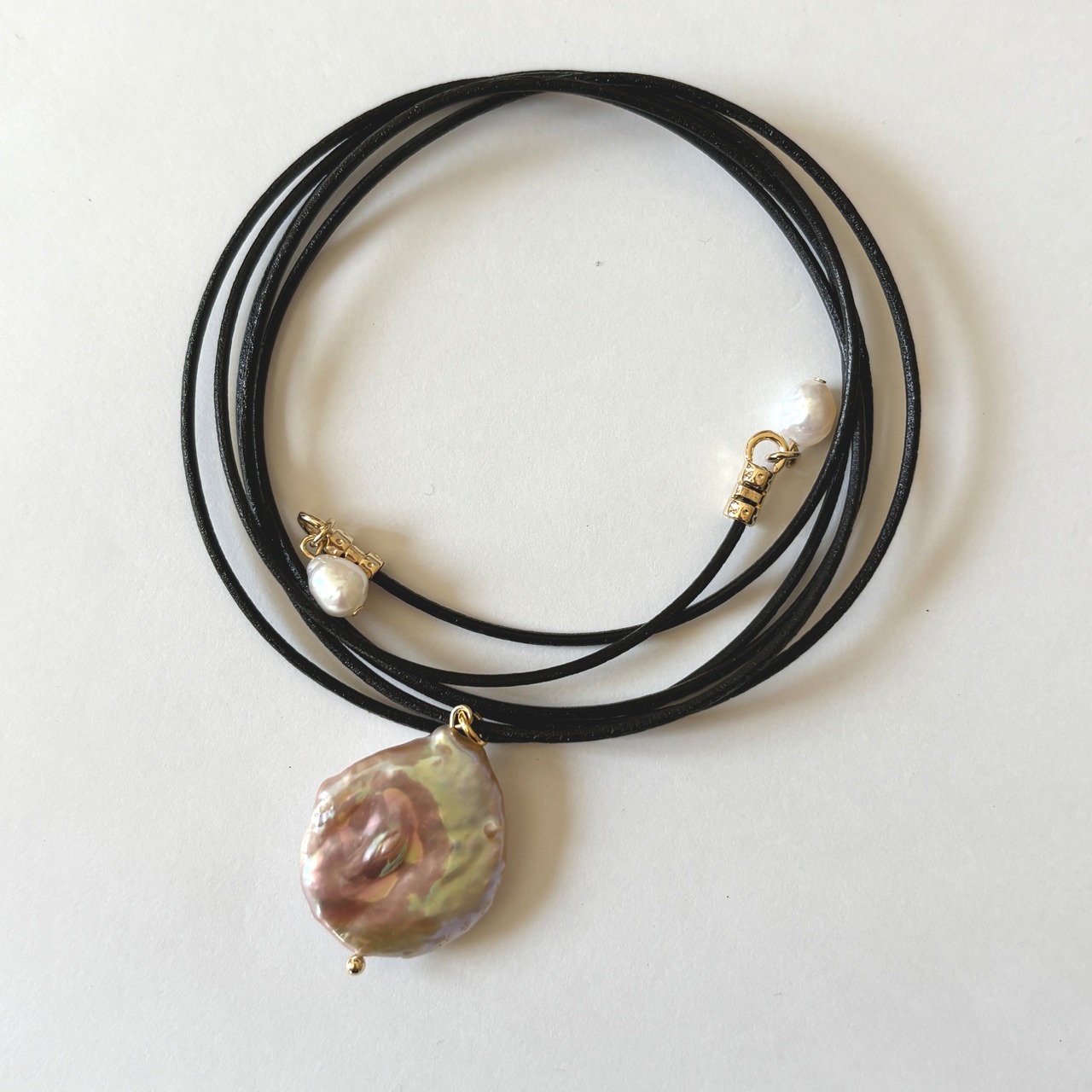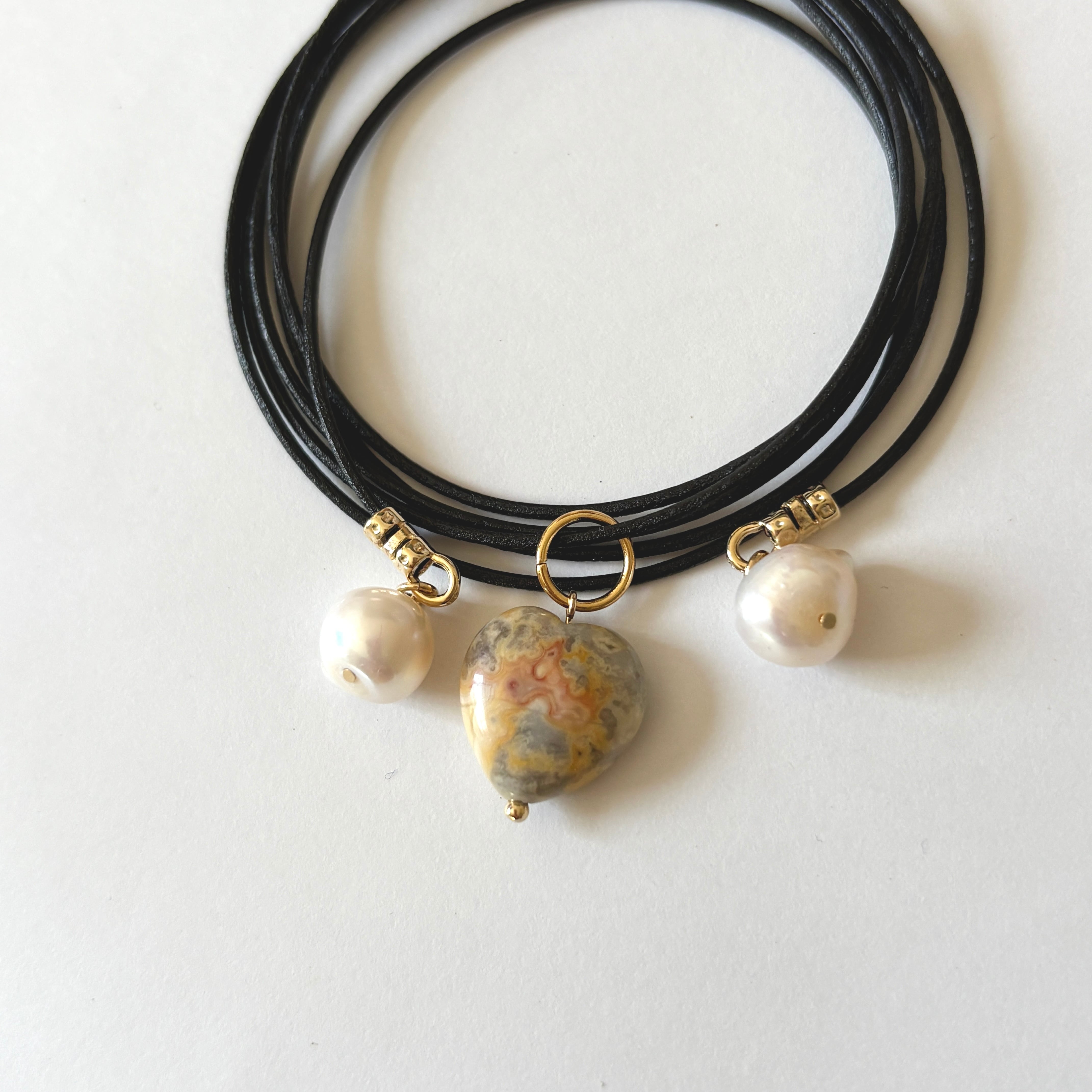 大粒の淡水パールや、天然石のハートモチーフを使用しています。