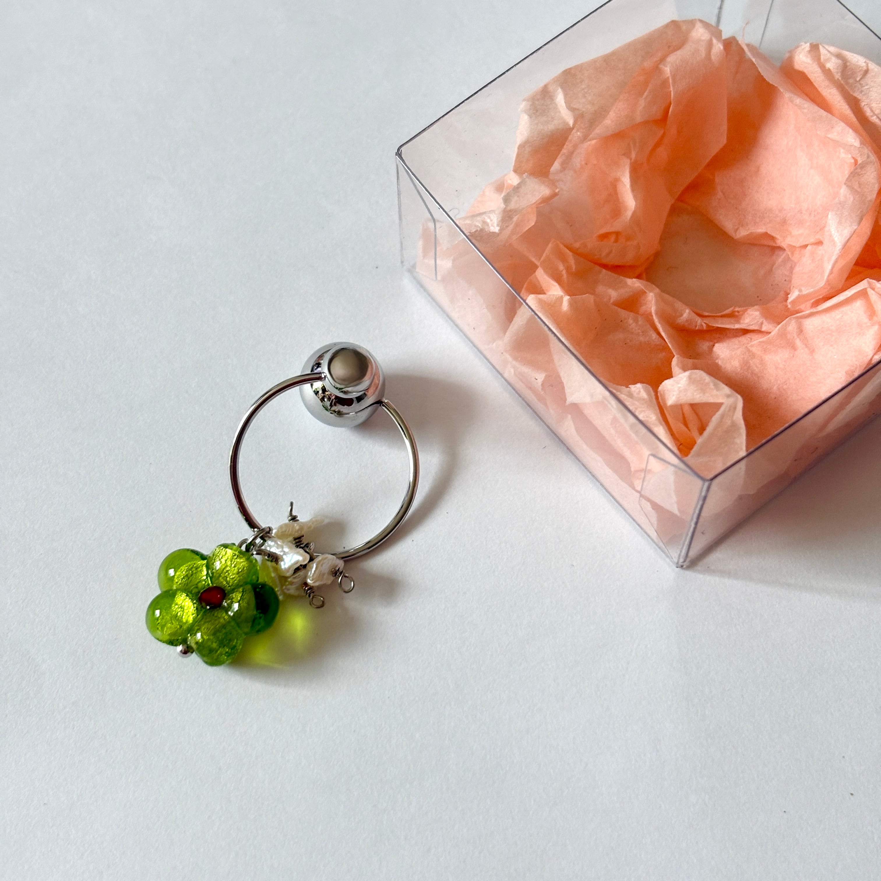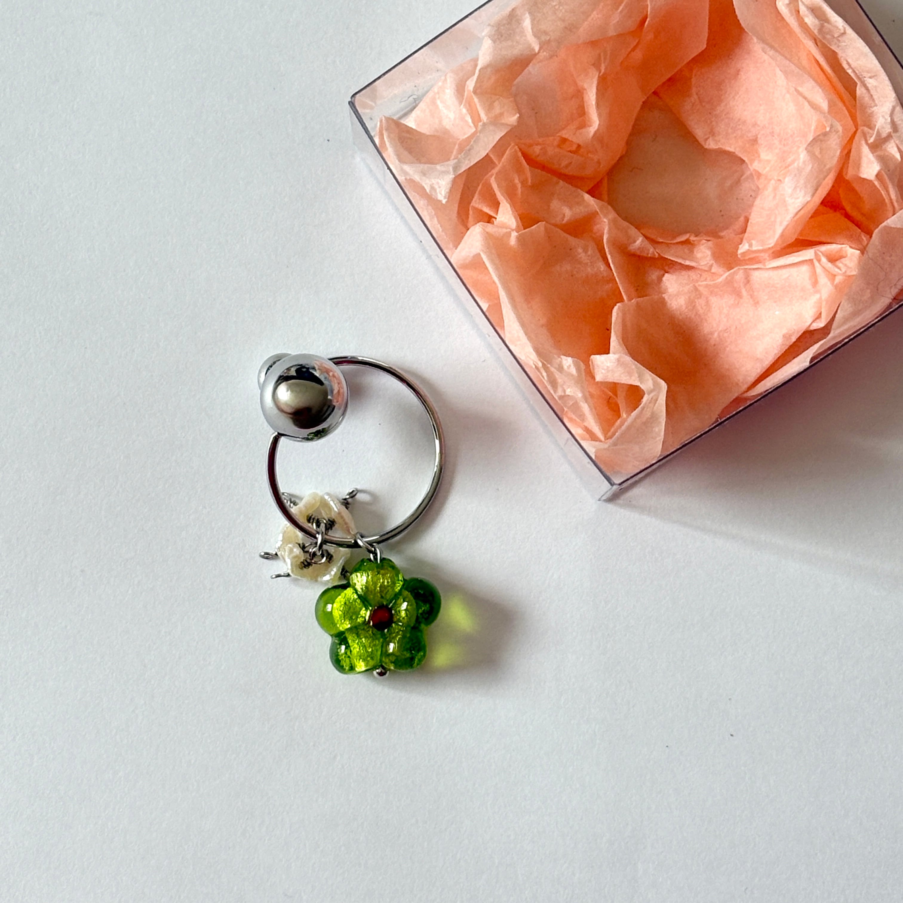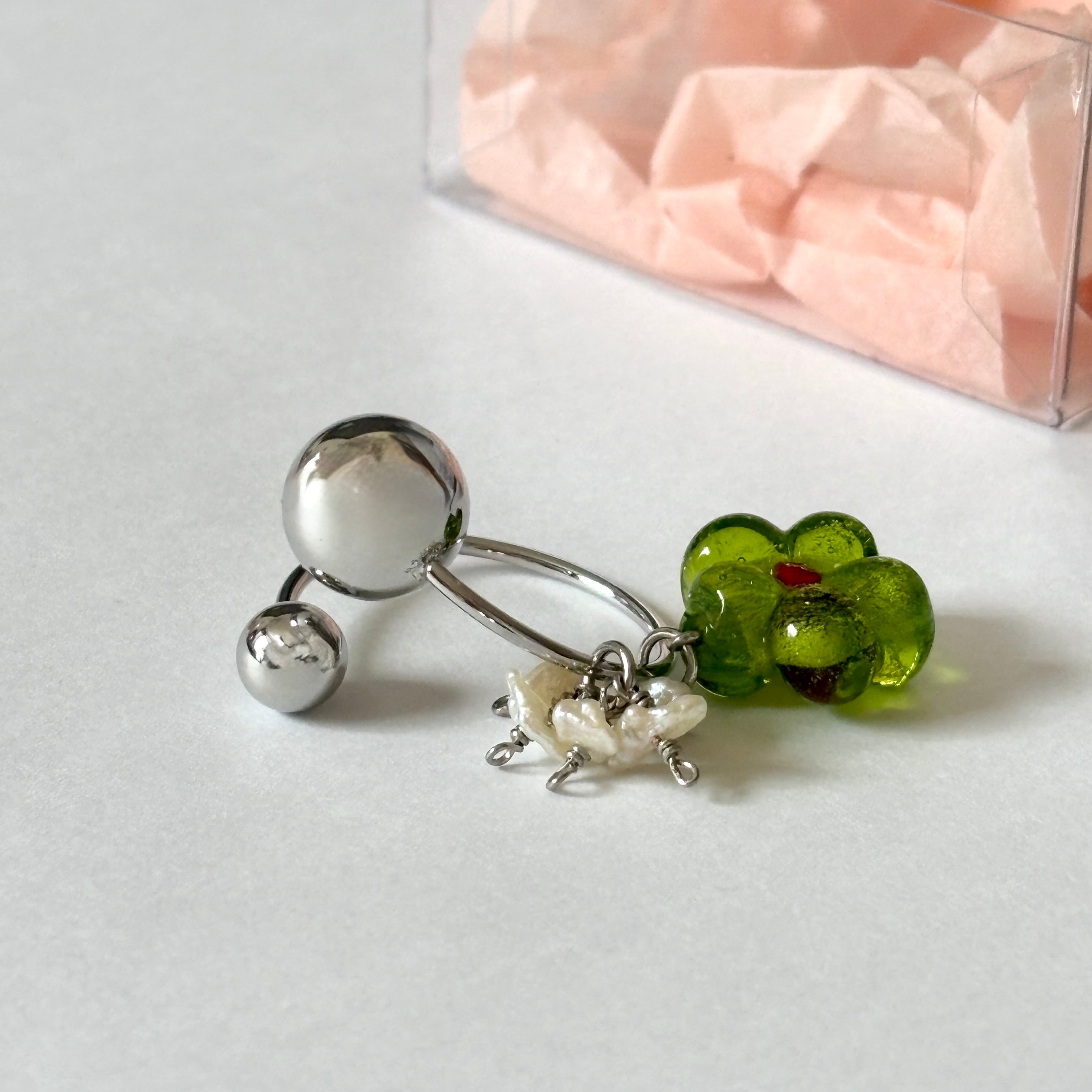 【ear cuff】お花ガラスと淡水パール