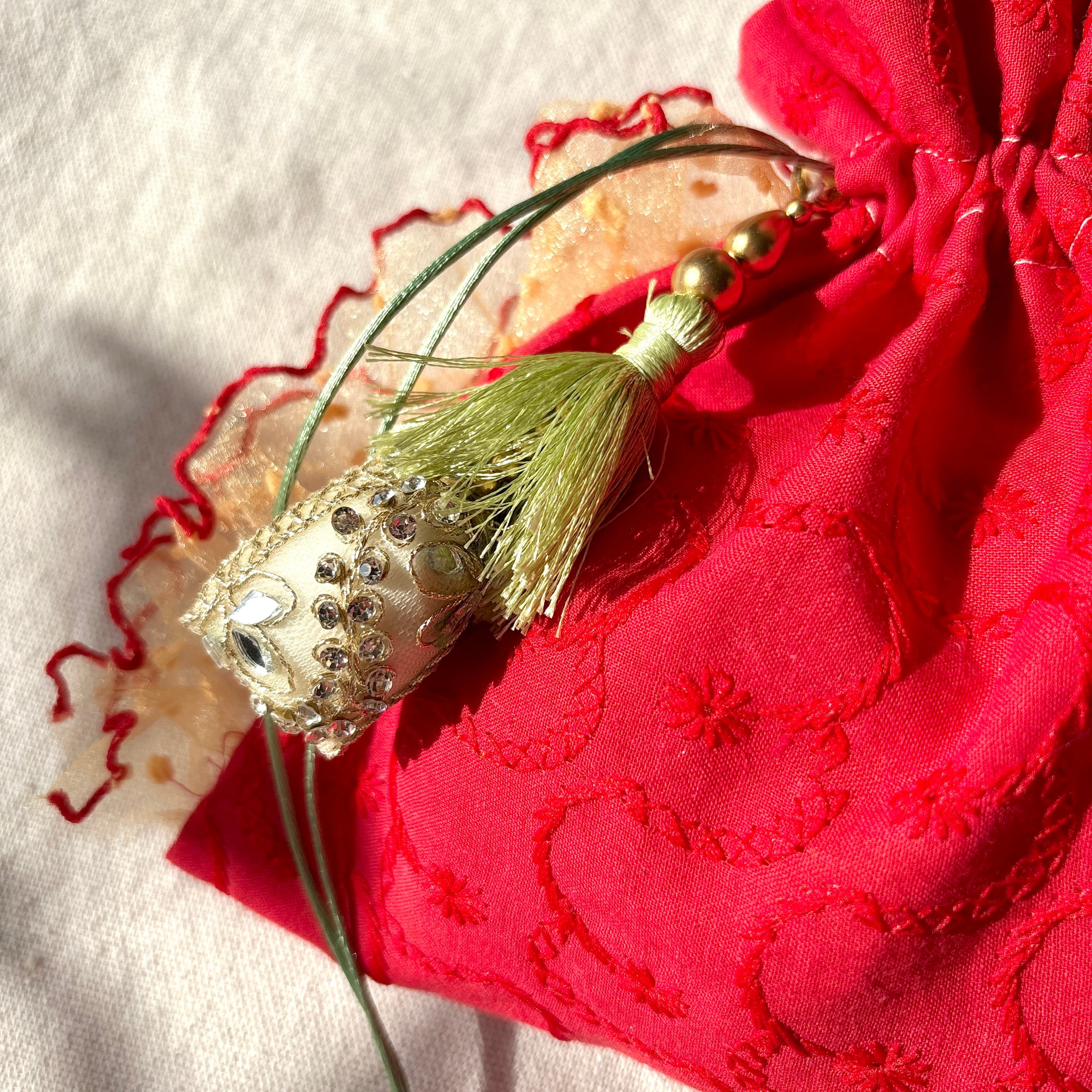 ラトカンチャーム付きのミニ巾着です。