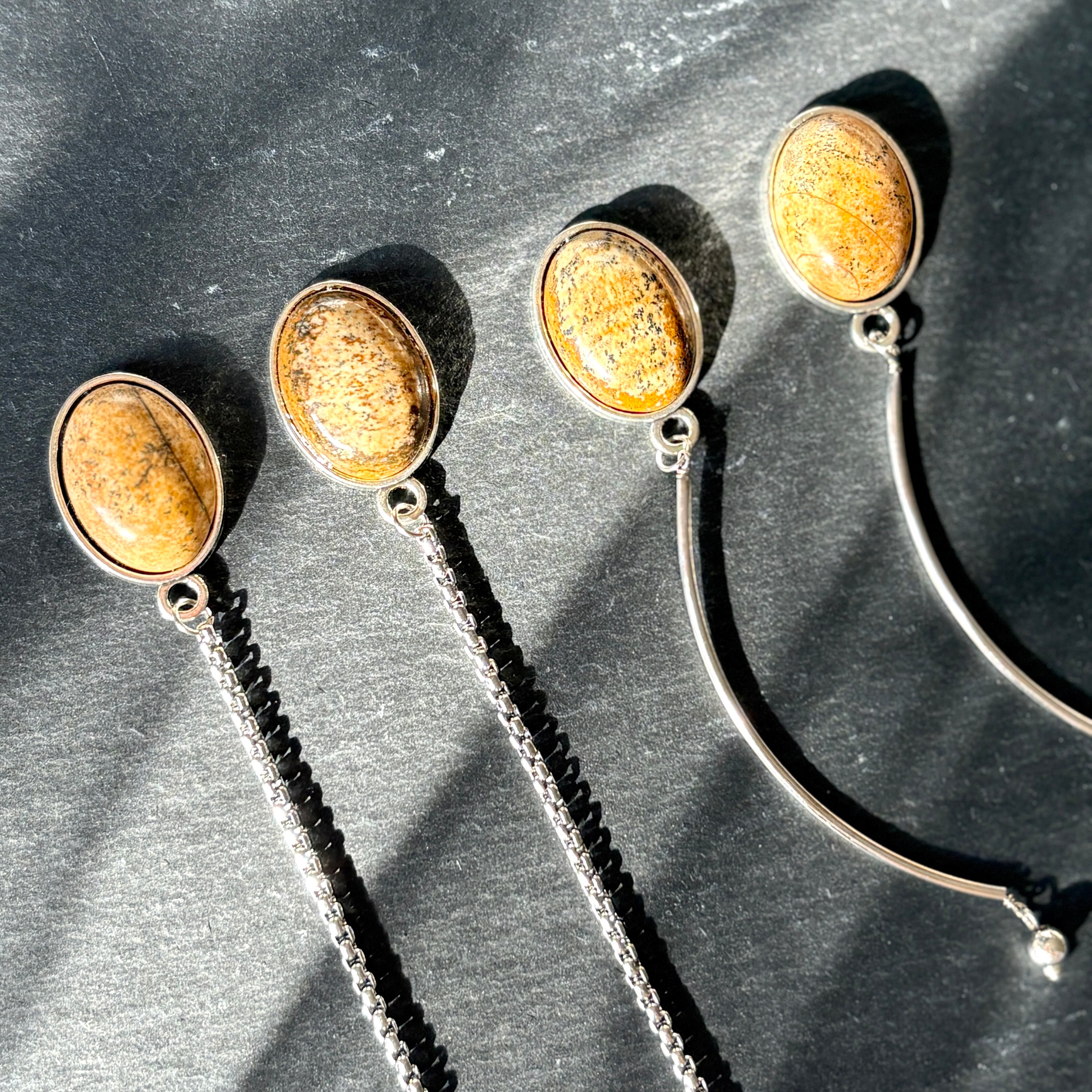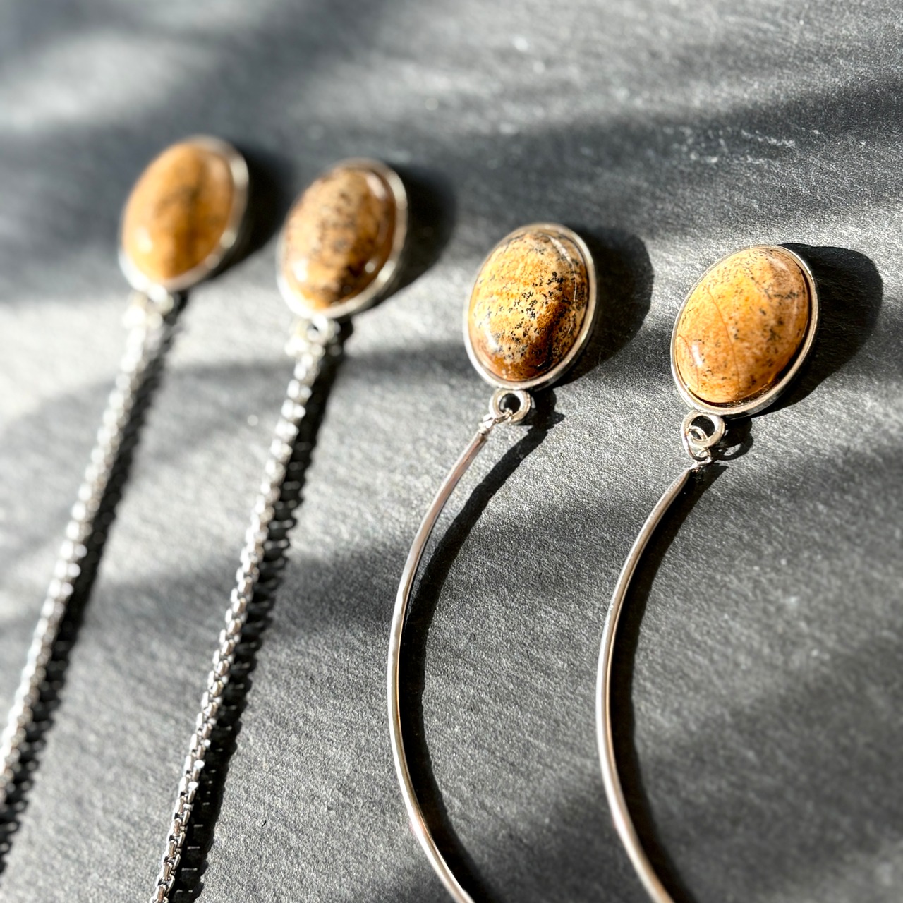 酸化鉄によって絵画のような模様が現れているのが特徴。精神的な安定、ストレス緩和などの意味をもつように、優しく温かみのある石です。