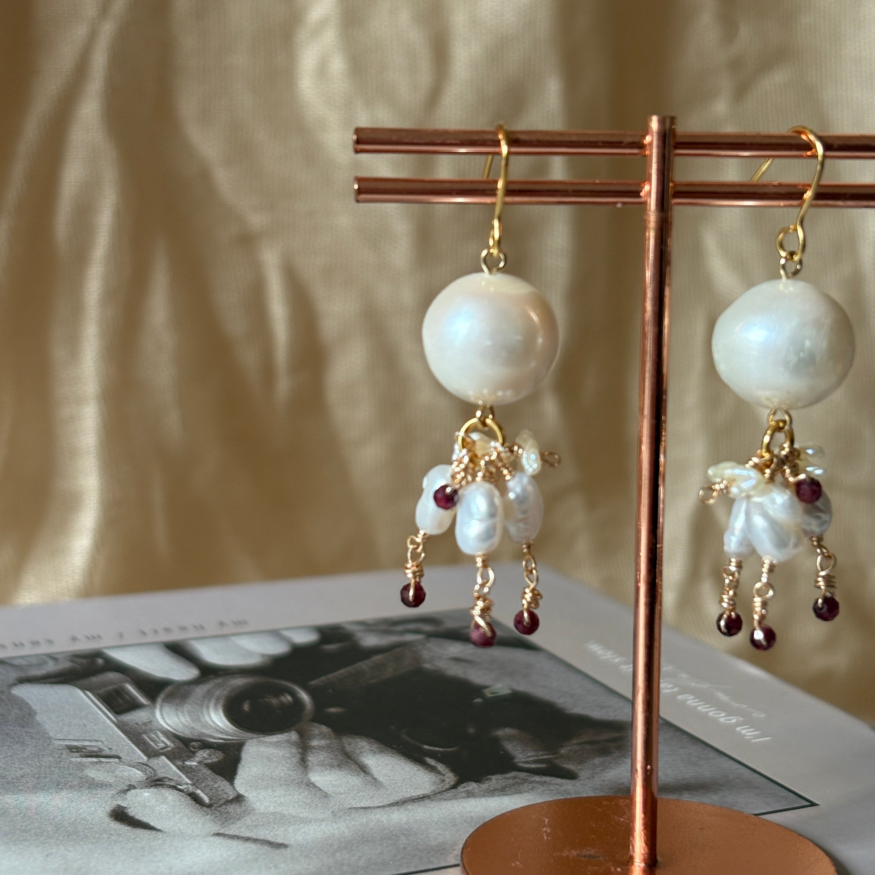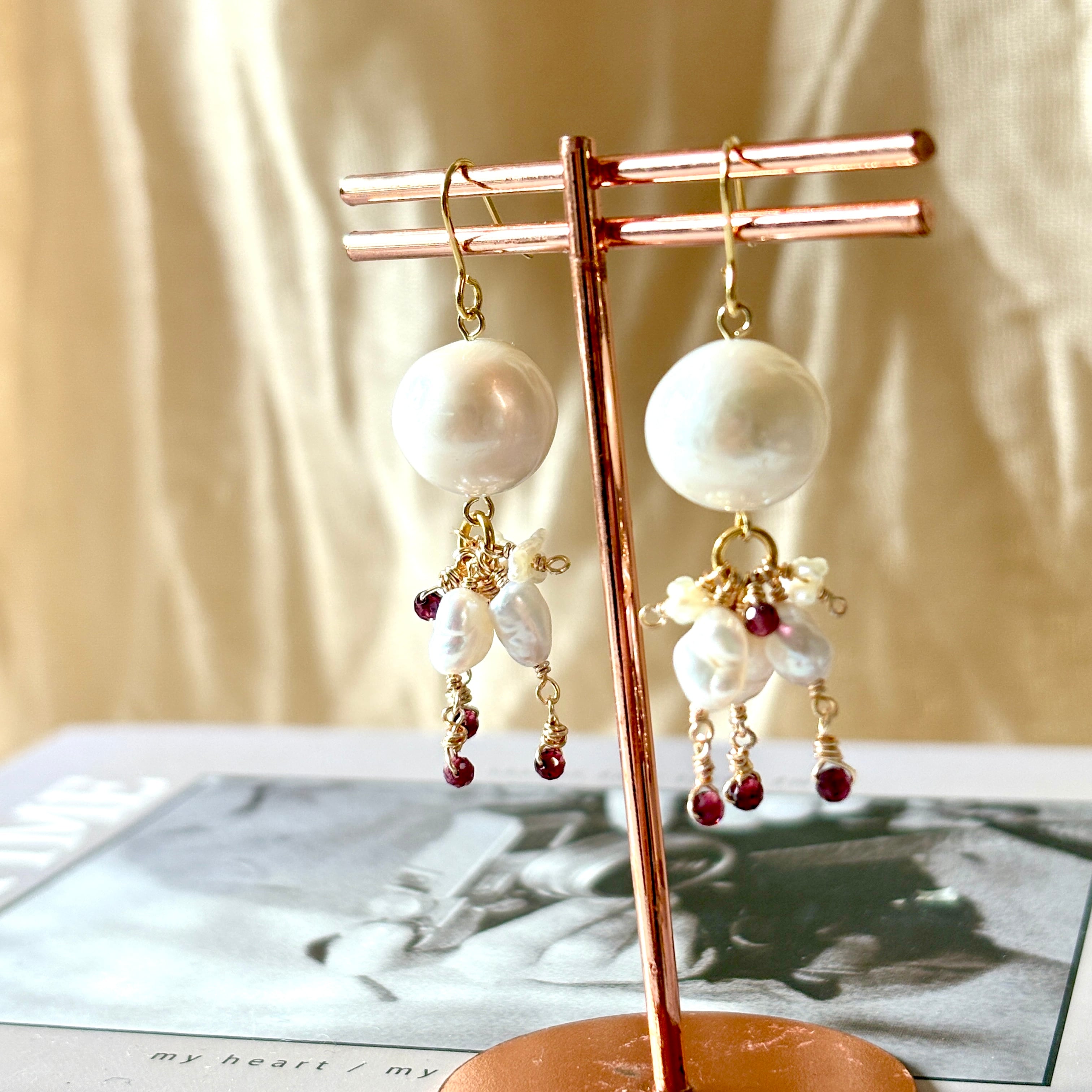 【chandelier】淡水パールとガーネットのシャンデリア