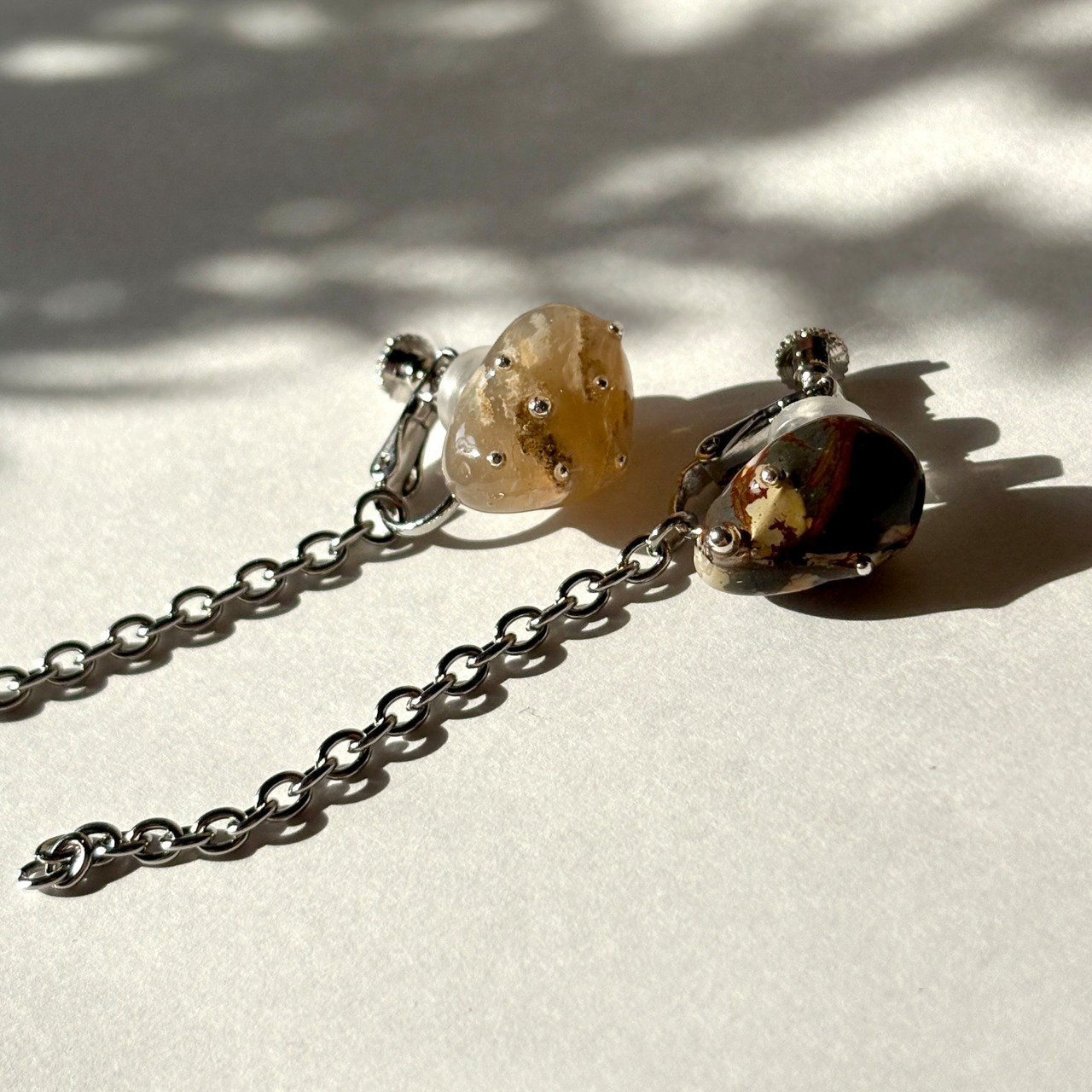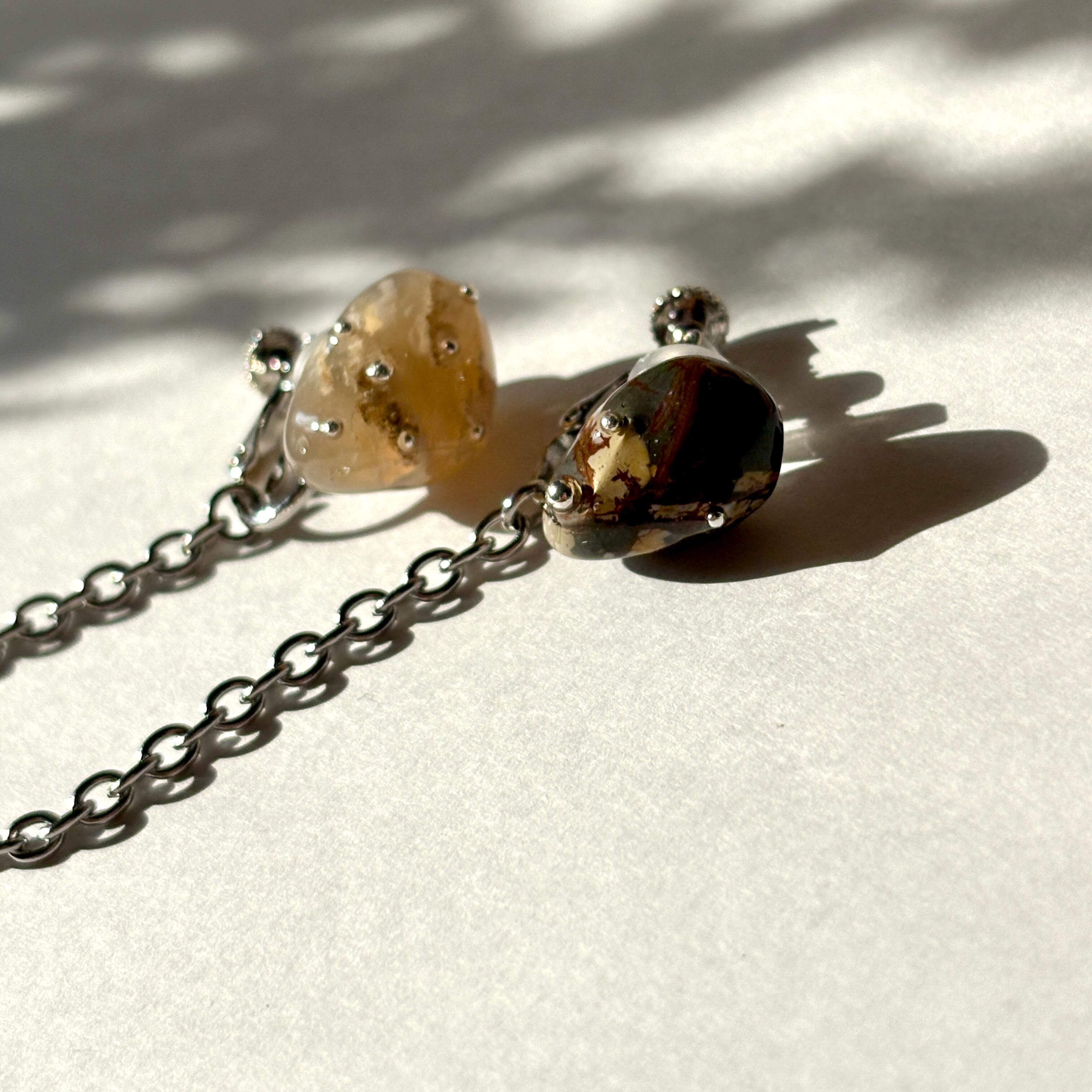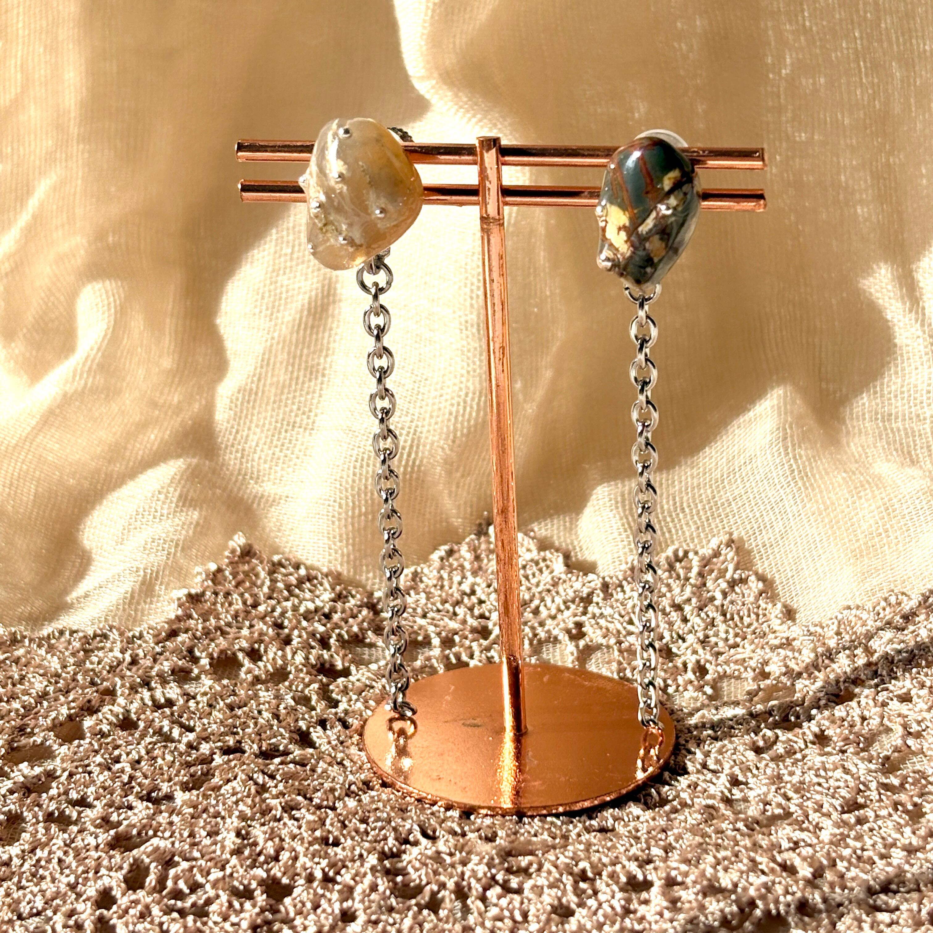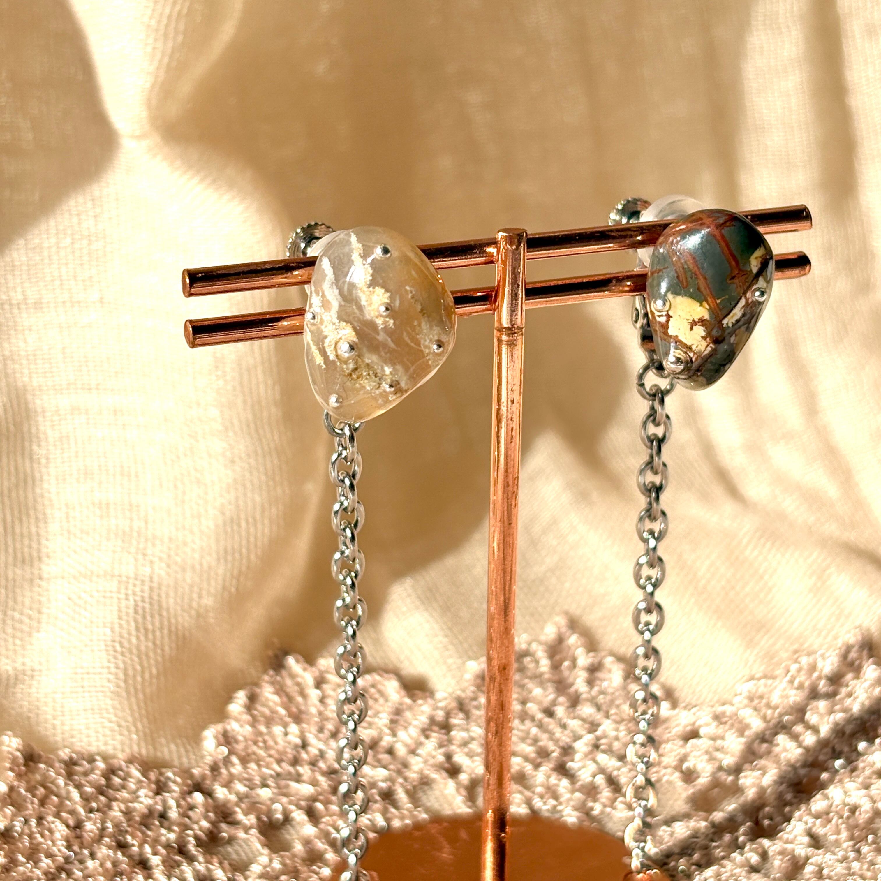 天然色の瑪瑙石(アゲート)につぶつぶとチェーンをつけたデザインです。
