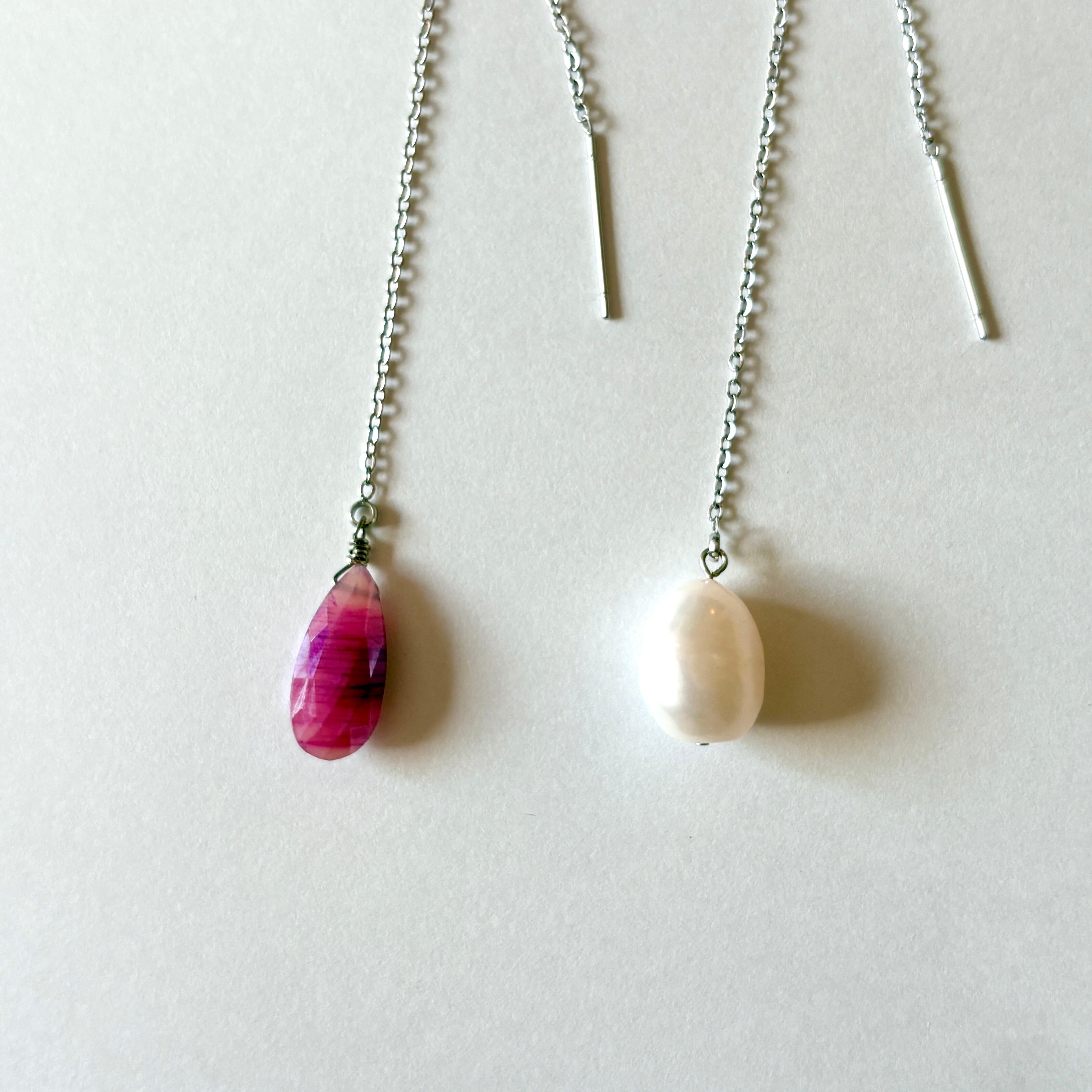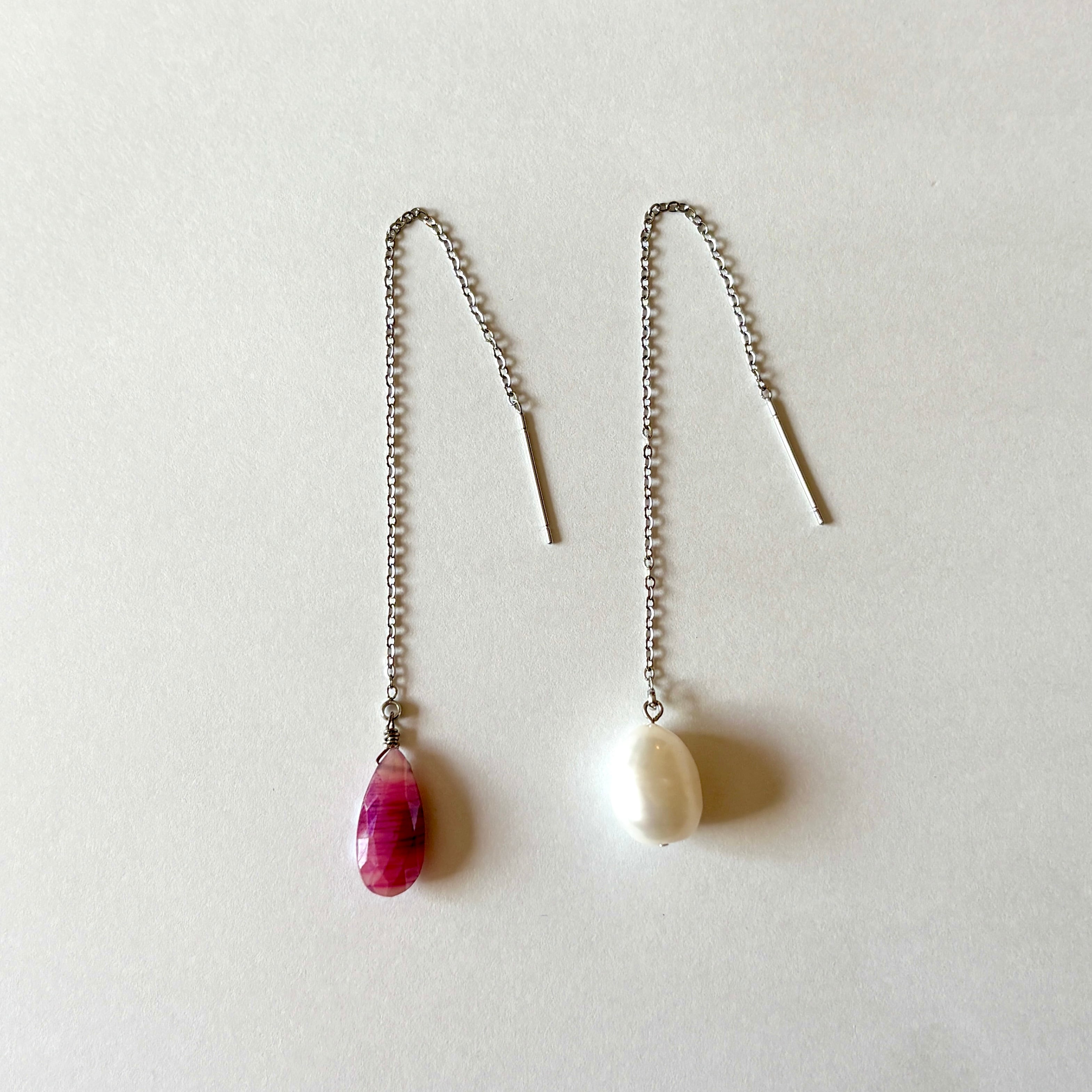 チェーンの部分まで耳に通すデザインのピアス。