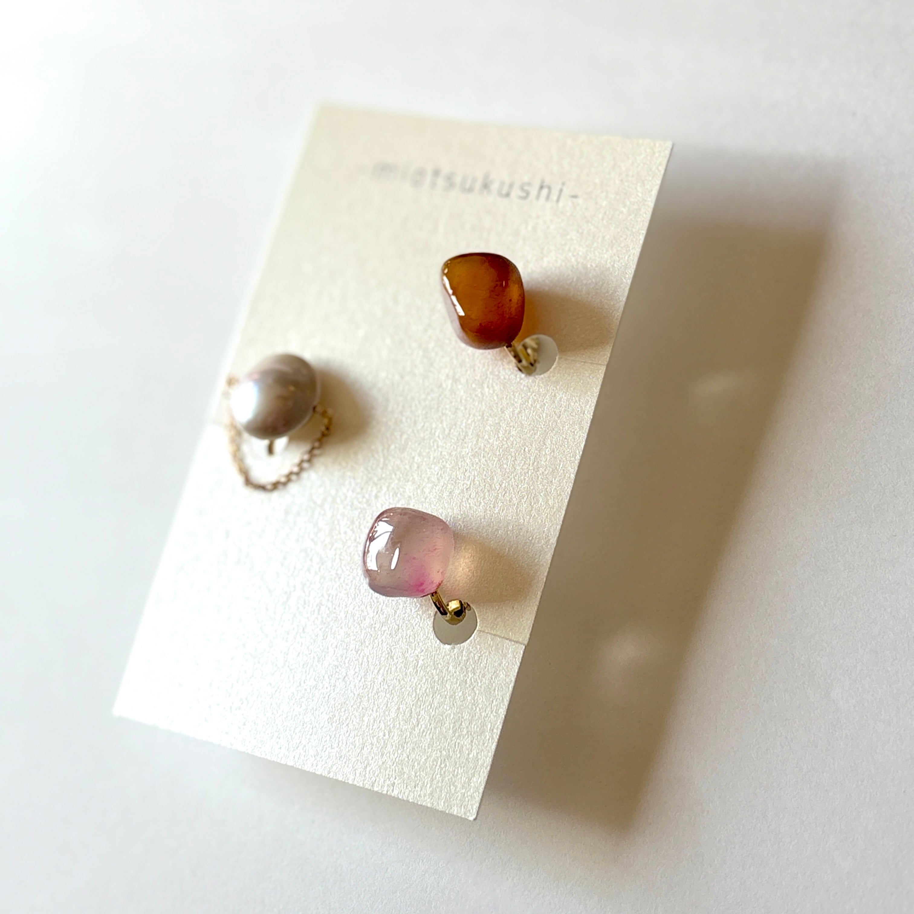 チェーン付きの淡水パールと合わせて3粒セットにしました。