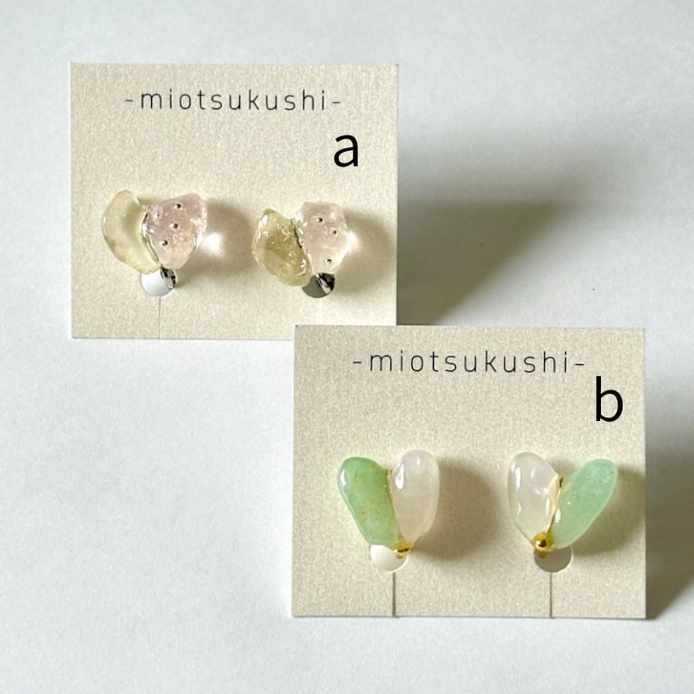 天然石を組み合わせてハートの形を作った人気の耳飾りです。