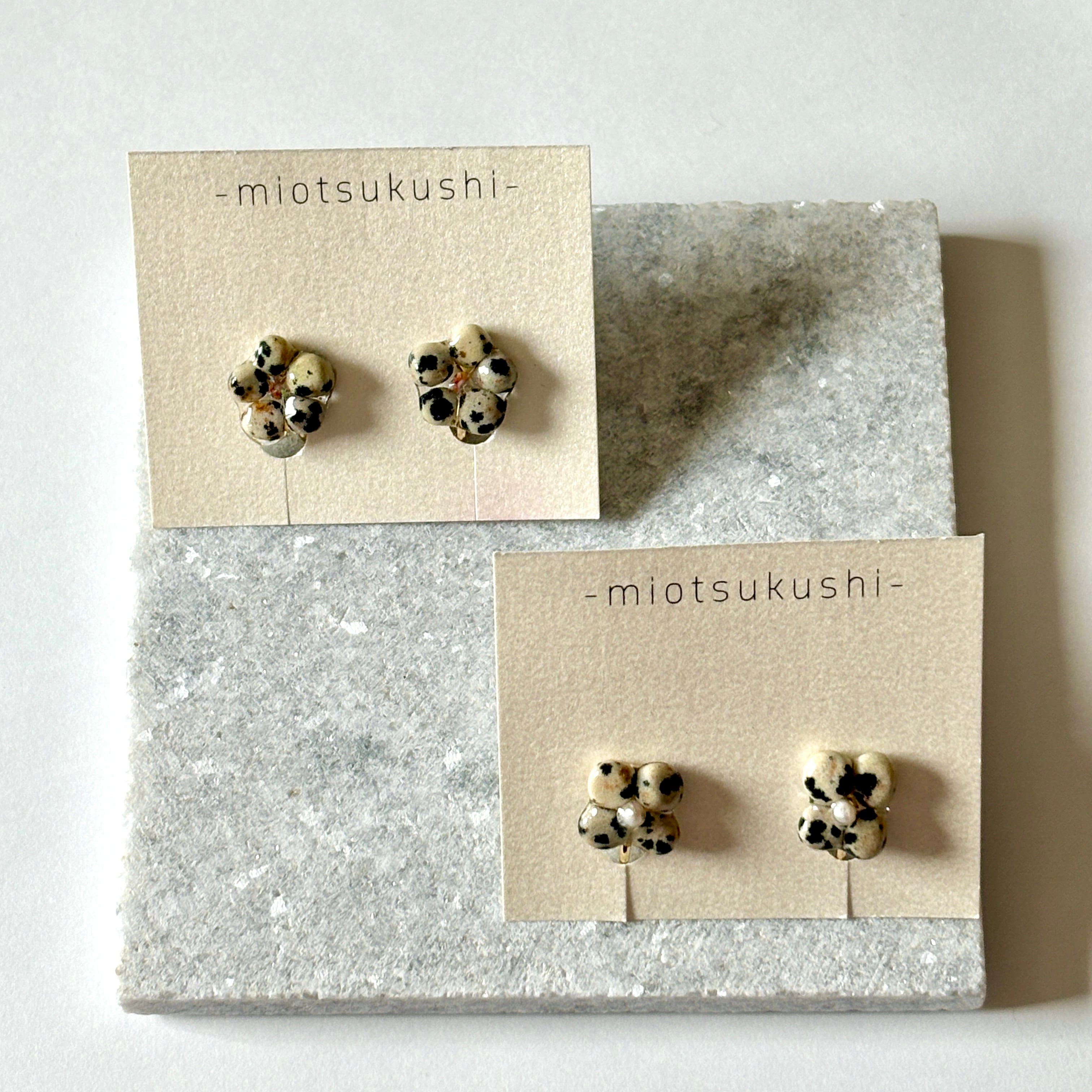 【Flower】ダルメシアンジャスパーのお花イヤリング